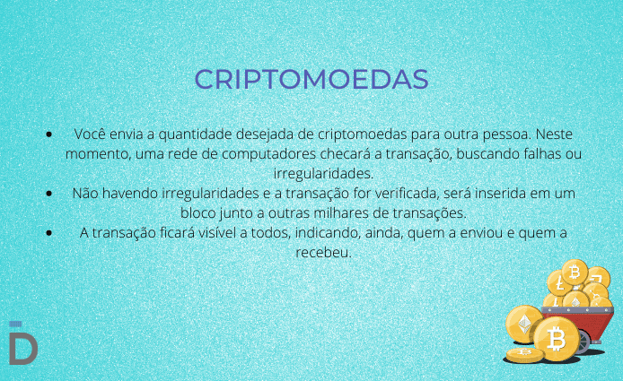 Vamos usar o exemplo das criptomoedas. Funciona da seguinte forma: